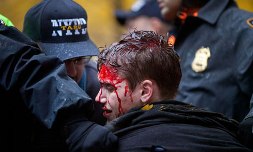 ![]() Jak podaje guardian.co.uk, w Los Angeles około 500 ludzi przemaszerowało ulicami miasta ze swego obozowiska w centrum, w pobliżu ratusza i budynku Bank of America do siedziby banku Wells Fargo. Skandowano między innymi: "Banki uratowano, nas sprzedano!" ("Banks got bailed out, we got sold out!"). Policja aresztowała 50 osób za blokowanie ruchu ulicznego. W Dallas w stanie Teksas 17 listopada nad ranem policja zlikwidowała obóz ruchu OWS ulokowany na terenie należącym do władz miasta. W Houston w tym samym stanie manifestanci przeszli przez miasto i urządzili wiec na placu Market Square. Część zablokowała ruch uliczny. 12 osób aresztowano. W Portland w stanie Oregon manifestacja zakończyła się aresztowaniem 48 osób, głównie pod zarzutem zakłócania porządku publicznego. Uczestnicy protestu demonstrowali przed siedzibami lokalnych oddziałów banków Wells Fargo i Chase. Demonstrantów siedzących na moście policja odprowadziła w plastikowych kajdankach. Demonstracje odbyły się także w Seattle w stanie Waszyngton, w Las Vegas w stanie Nevada i w San Francisco w Kalifornii. W St. Louis kilkanaścioro demonstrantów aresztowano za to, że próbowali zablokować most na rzece Mississippi, siedząc ze skrzyżowanymi nogami i splecionymi ramionami. Na 19 listopada OWS zapowiedział kolejną manifestację w Waszyngtonie. Fot. Andrew Burton/Getty Images. |