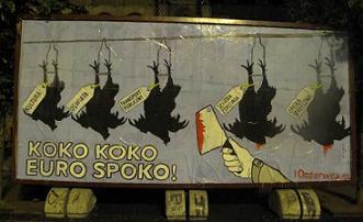 3 czerwca we wszystkich miastach organizujących Euro 2012, wykleiliśmy cztery bilbordy. To głos tych, których władza przez następne lata będzie zmuszała do zapłacenia rachunków za tę hucpę. Tych zamieszkujących ubogie dzielnice i rudery Wrocławia, Gdańska, Poznania, Warszawy, jak również innych miast, miasteczek i wsi skazanych na wegetację bez żadnych perspektyw. To krytyka tego, co się wokół nas dzieje i wezwanie do oporu. Jeśli nie tu, to gdzie? Jeśli nie teraz, to kiedy? Jeśli nie my, to kto?