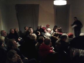 Przybyło tak wielu lokatorów, że jednocześnie trzeba było przeprowadzić dwa spotkania. Antoni Wiesztort z Kolektywu Syrena przedstawił historyczne tło zjawiska reprywatyzacji. Mówił o kosztach odbudowy Warszawy poniesionych po roku 1945 przez całe społeczeństwo. Powiedział również o złym gospodarowaniu zasobem mieszkaniowym w wyniku którego pomimo, że w mieście są tysiące pustostanów, również w zasobie komunalnym, wiele osób latami czeka na mieszkania.