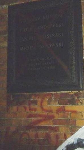 ![]() Zabytkową tablicę znajdującą się na murze Cytadeli Warszawskiej nieopodal miejsca straceń wandale pomazali czerwoną farbą, a pod spodem, na murze dopisali "precz z komuną". Sprawa została zgłoszona przedstawicielom Muzeum X Pawilonu Cytadeli Warszawskiej, odpowiadającym za miejsce pamięci. Zapewniają, że farba zostanie usunięta z muru i tablicy najszybciej jak to możliwe. Niestety twierdzą, że nie administrują terenem poza murem Cytadeli, w związku z czym nie są w stanie zapewnić miejscu pamięci lepszych zabezpieczeń. |