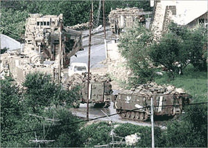 ![]() O poranku Ariel Szaron wystąpił w telewizji z oświadczeniem, które zostało przez wielu odczytane jako wypowiedzenie wojny narodowi palestyńskiemu. Szaron stwierdził m.in., że Arafat jest wrogiem Izraela i zostanie pojmany przez izraelskich żołnierzy. Atak na kwaterę Arafata w Ramallah na Zachodnim Brzegu Jordanu jest tylko częścią szerszej akcji wojskowej, do przeprowadzenia której rząd Izraela powołał 20.000 żołnierzy. Atak na Palestyńczyków jest odpowiedzią na wczorajszy zamach w Natanii, gdzie z rąk zamachowca zginęło 20 Izraelczyków. Min. obrony Izraela Ben Eliezer oświadczył, że armia dostała wolną rękę w działaniach na terenach palestyńskich. Tymczasem Jaser Arafat w rozmowie telefonicznej z dziennikarzami Al-Dżaziry stwierdził, że Izraelczycy chcą go uwięzić lub zabić. Arafat oświadczył, że Izraelowi nie zależy na pokoju, a atak na Ramallah jest odpowiedzią na przyjęcie przez szczyt arabski planu pokojowego autorstwa Saudyjczyków. /bbc, onet, aljazeera.net/ |